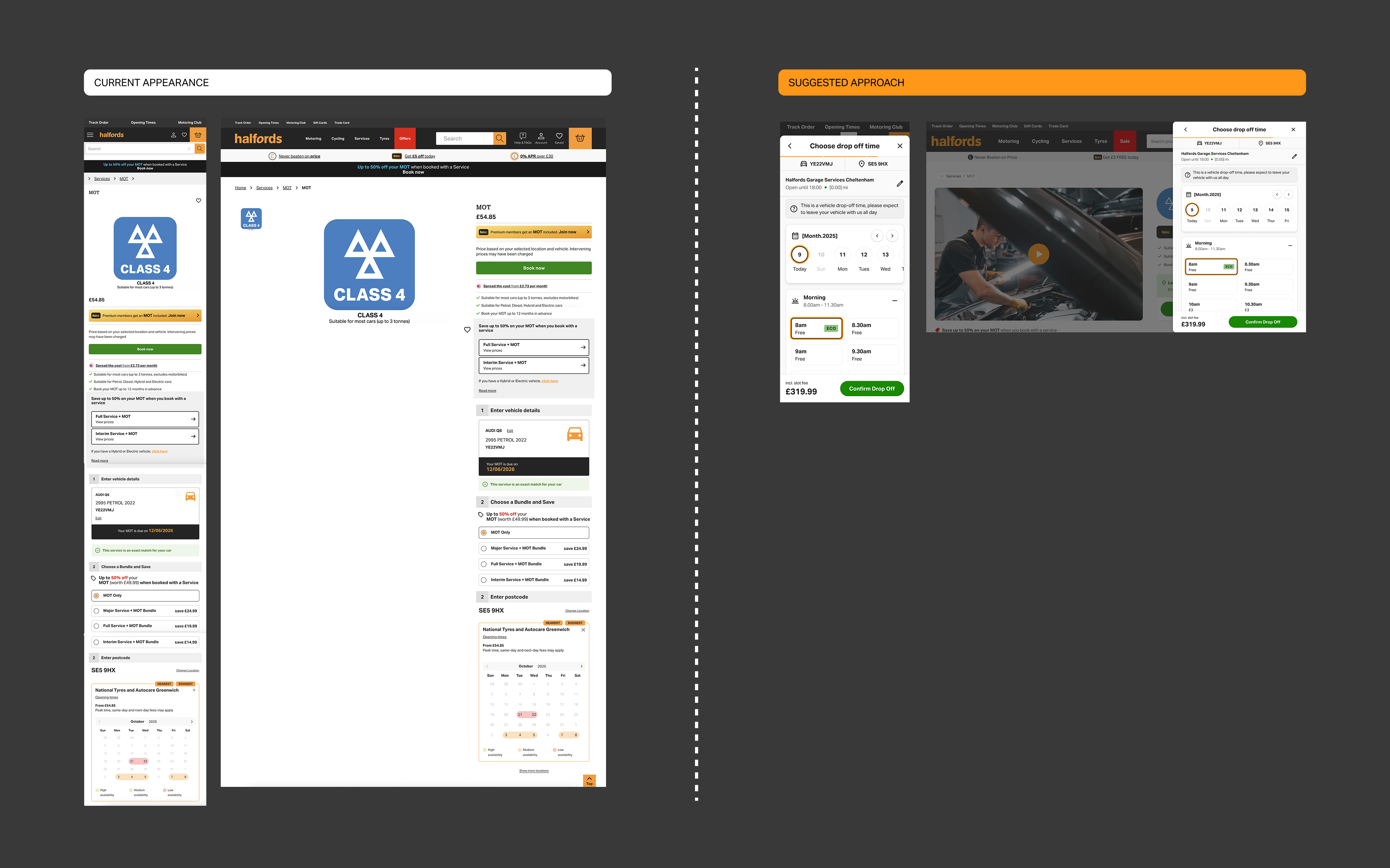 The redesign delivered a more intuitive and efficient booking experience. Usability improved, booking friction was reduced and the new modular system established a scalable foundation for future service expansion and design consistency across the Halfords ecosystem.